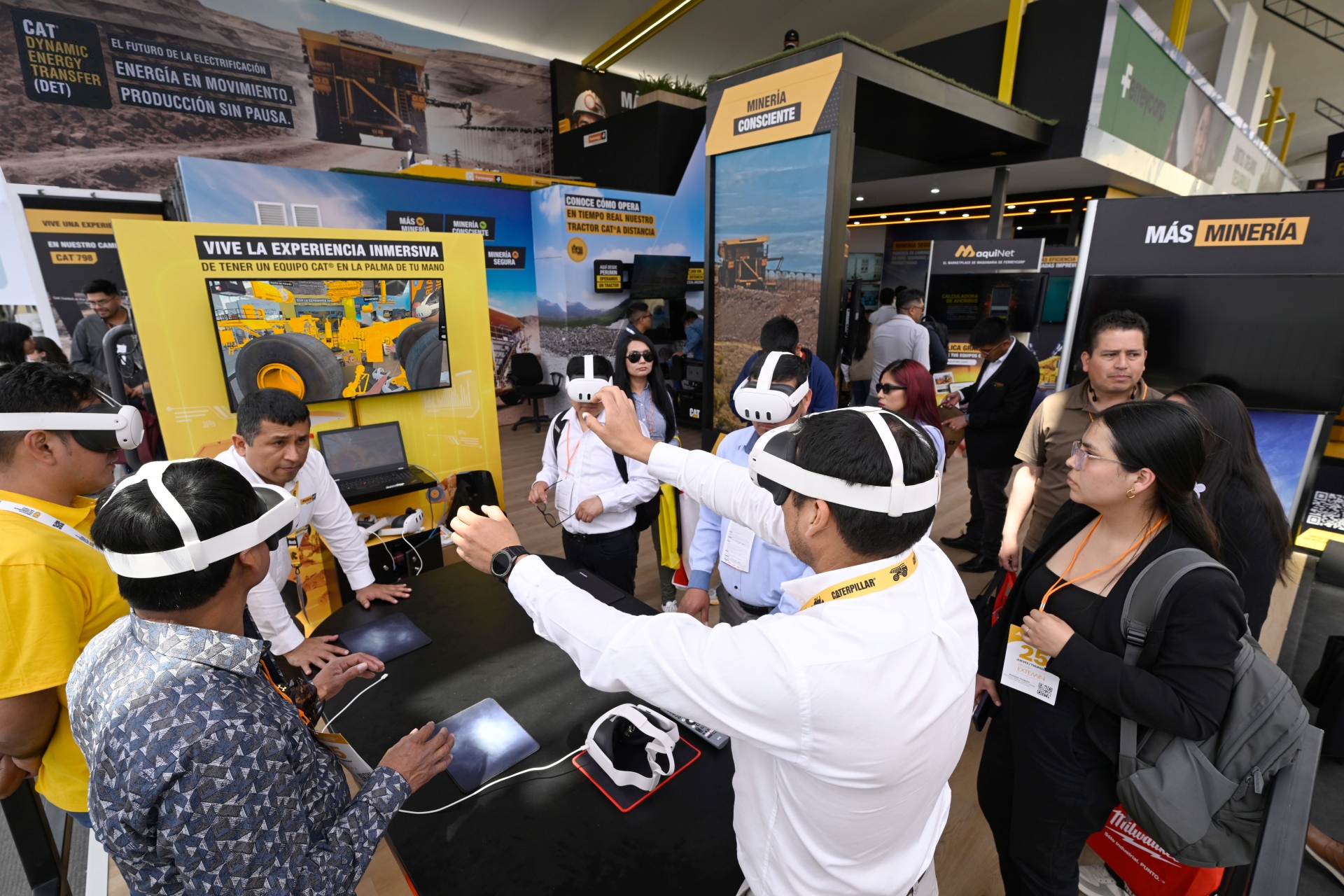 La autonomía de Caterpillar viene contribuyendo a lograr mayor seguridad y eficiencia operativa en Quellaveco, mina que cuenta con los primeros camiones autónomos del país: 32 camiones Cat 794. En el stand, con tecnología inmersiva, los visitantes se transportaron a la sala de control de una operación autónoma y exploraron este modelo. Ferreyros también presentó la autonomía en perforadoras, en implementación en el país.